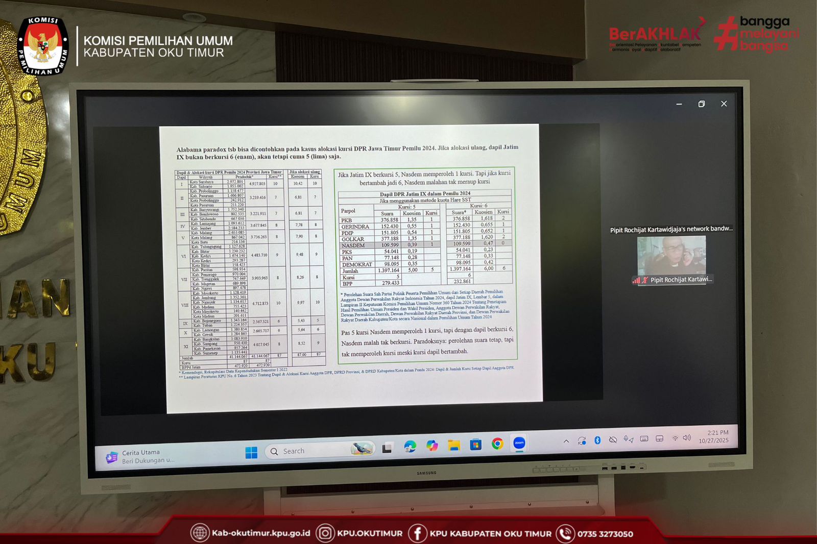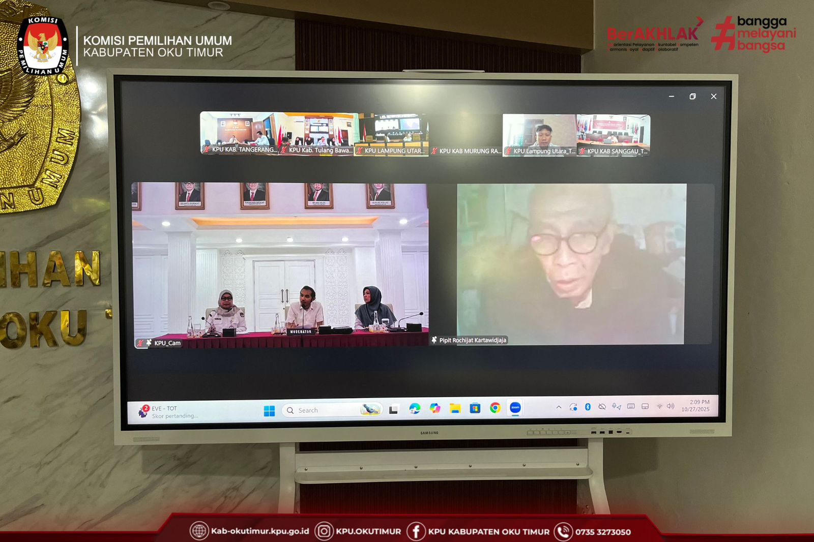 #TemanPemilih KPU Kabupaten OKU Timur melalui Kasubbag Teknis Penyelenggara Pemilu dan Hukum Bapak Saires Bend, S.E dan Staf mengikuti kegiatan Forum Diskusi Terpumpun (FDT) Proporsionalitas Daerah Pemilihan dan Alokasi Kursi Dalam Rangka Mewujudkan Pemilu yang Representatif dan Berkeadilan oleh KPU Republik Indonesia melalui Zoom Merting. Senin, (27/10/2025)