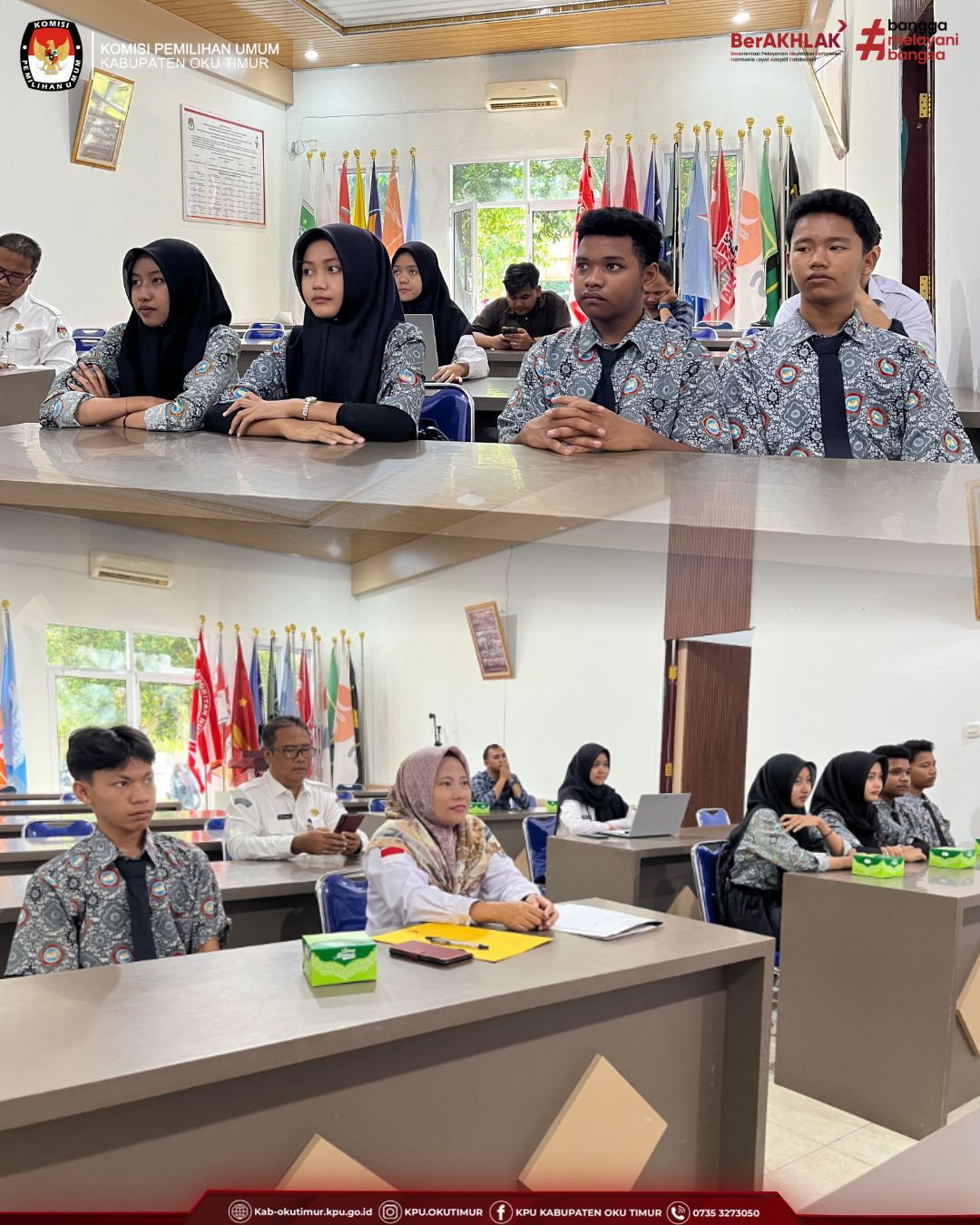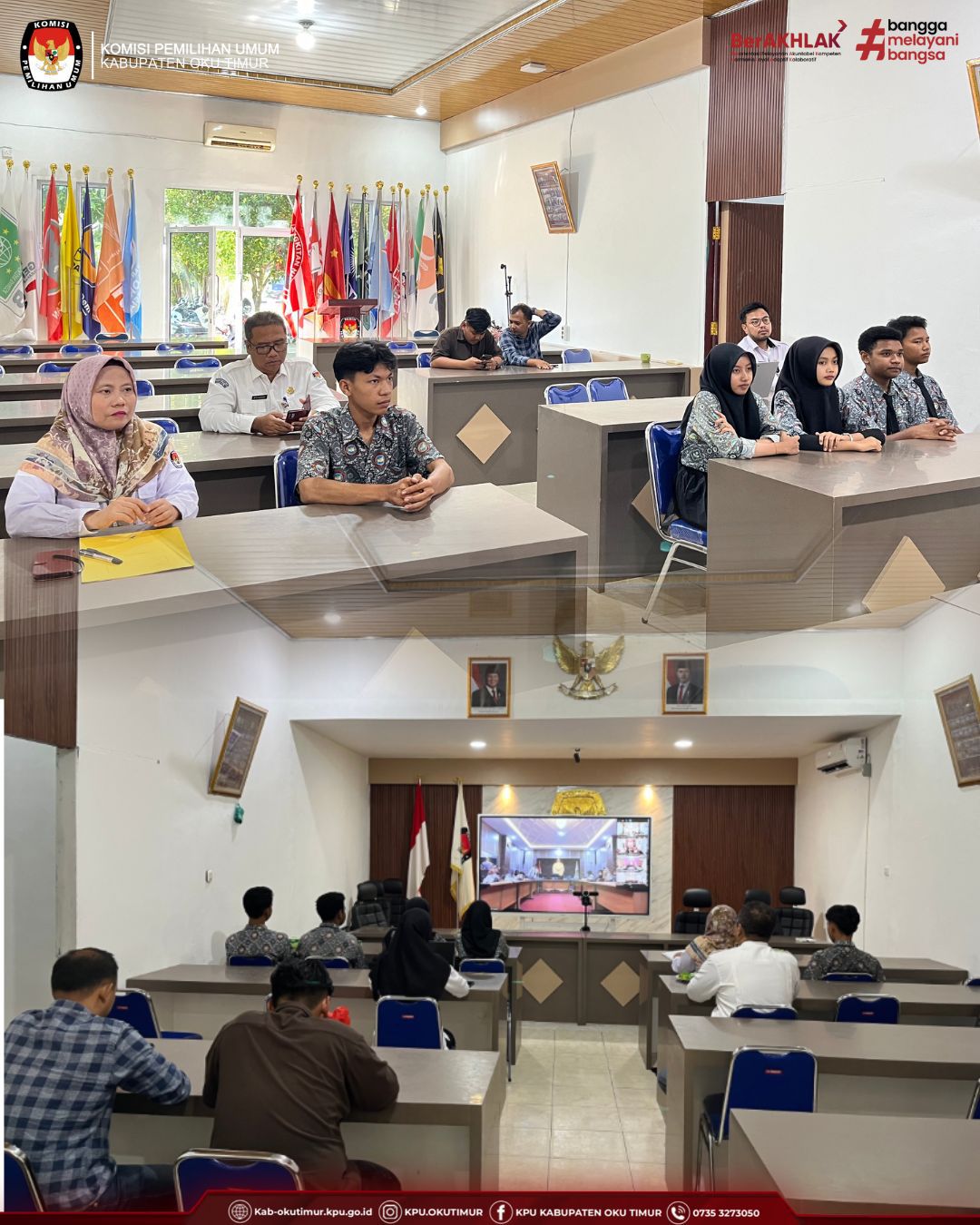 Dalam kegiatan Webinar ini KPU Kabupaten OKU Timur mengundang Pelajar dari SMK BAKTI IBU I Martapura. Turut hadir Anggota KPU Kabupaten OKU Timur Bapak Aldi Andriansyah, S.E. Selaku Kepala Divisi Partisipasi Masyarakat dan SDM KPU Kabupaten OKU Timur, didampingi oleh Sekretaris KPU Kabupaten OKU Timur Bapak Irto Sunardi, S.E., M.Si serta Kasubbag dan Staf.