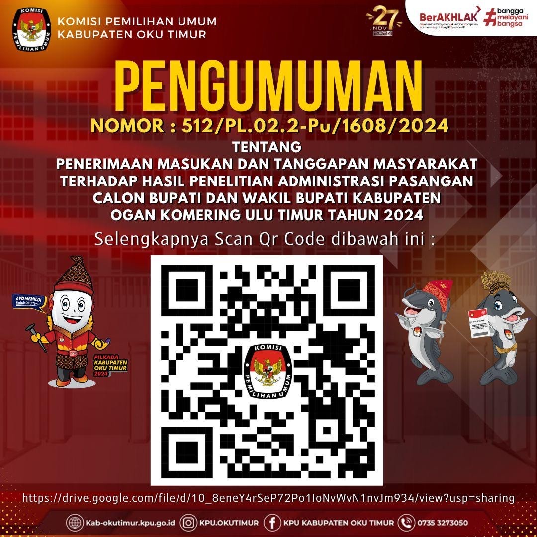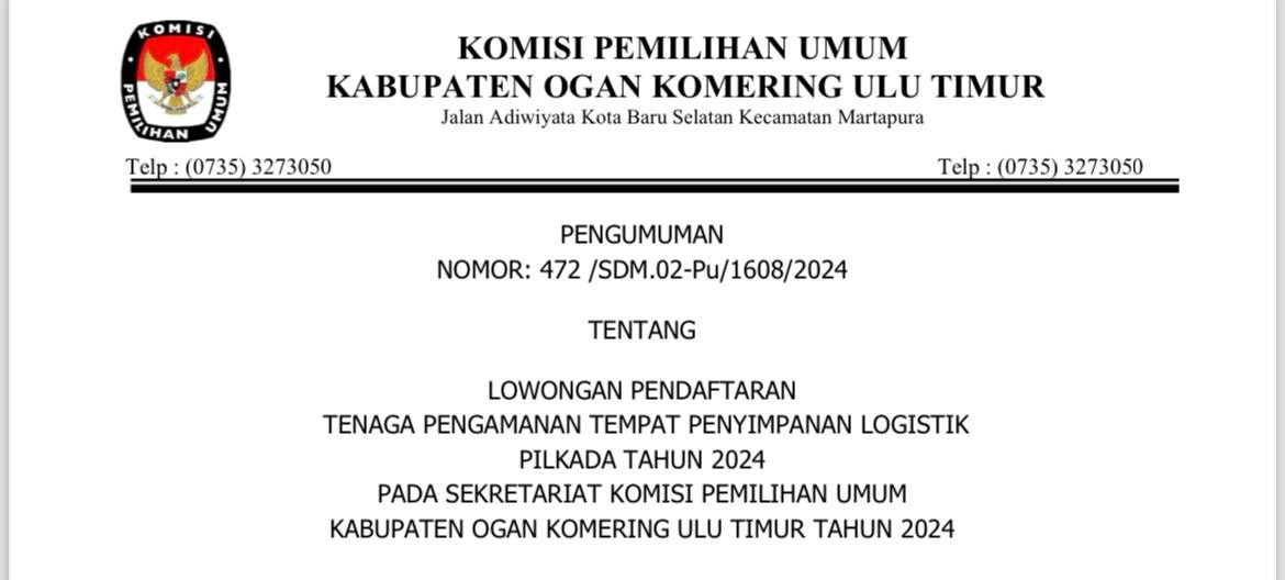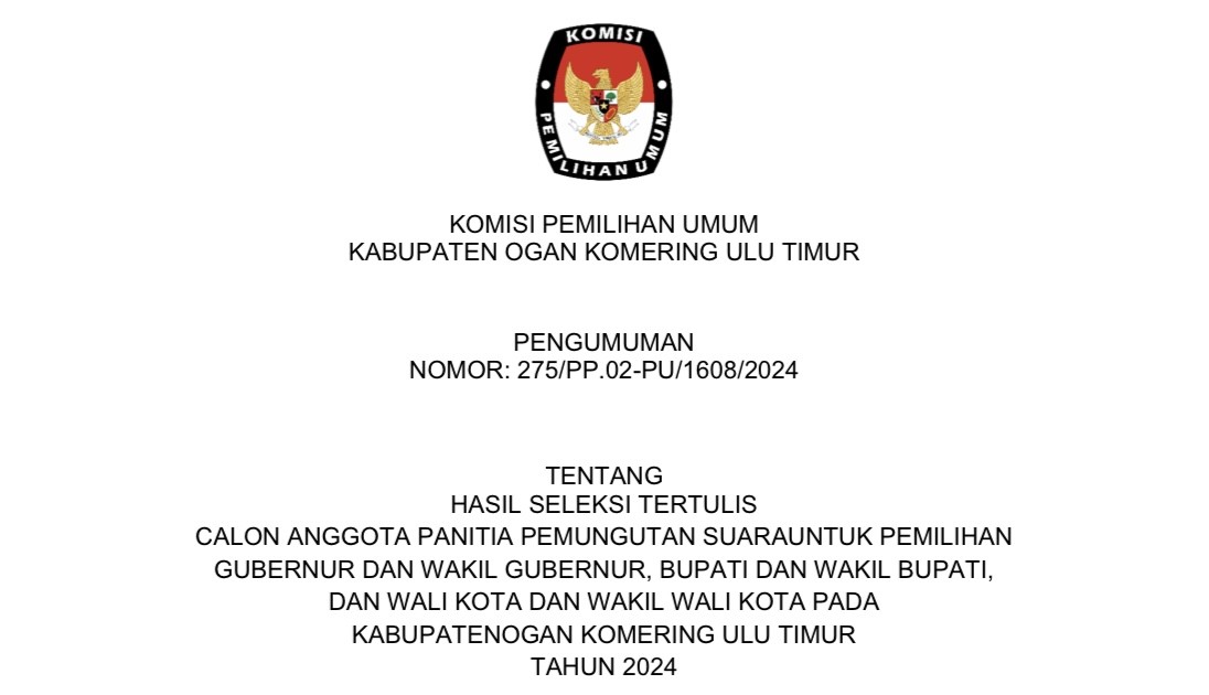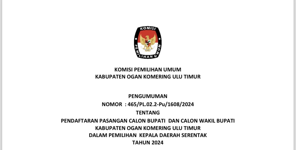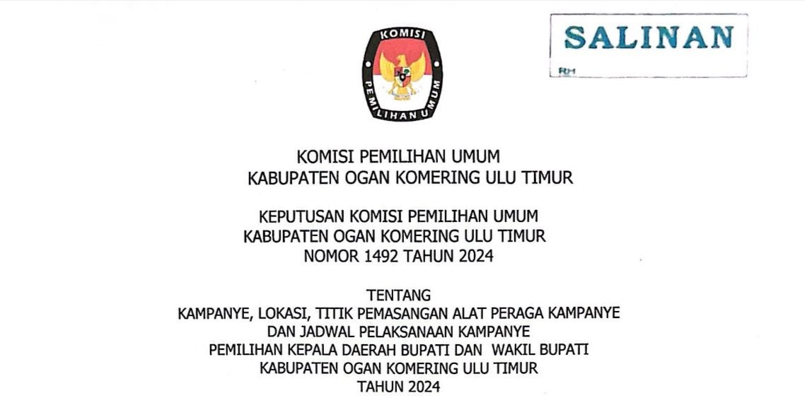 #TemanPemilih, Berikut Salinan Keputusan Komisi Pemilihan Umum Kabupaten Ogan Komering Ulu Timur Nomor 1492 Tahun 2024 Tentang Kampanye, Lokasi, Titik Pemasangan Alat Peraga Kampanye dan Jadwal Pelaksanaan Kampanye Pemilihan Kepala Daerah Bupati dan Wakil Bupati Kabupaten Ogan Komering Ulu Timur Tahun 2024, File Lengkap Dapat di Unduh DISINI