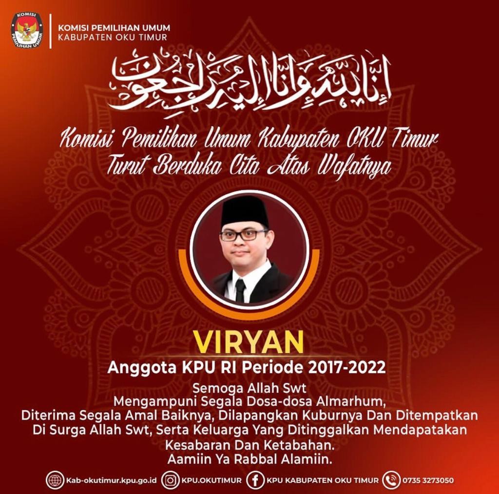#temanpemilih, Segenap Keluarga Besar KPU OKU Timur mengucapkan duka mendalam atas meninggalnya Bapak Viryan Anggota KPU RI Periode 2017-2022.