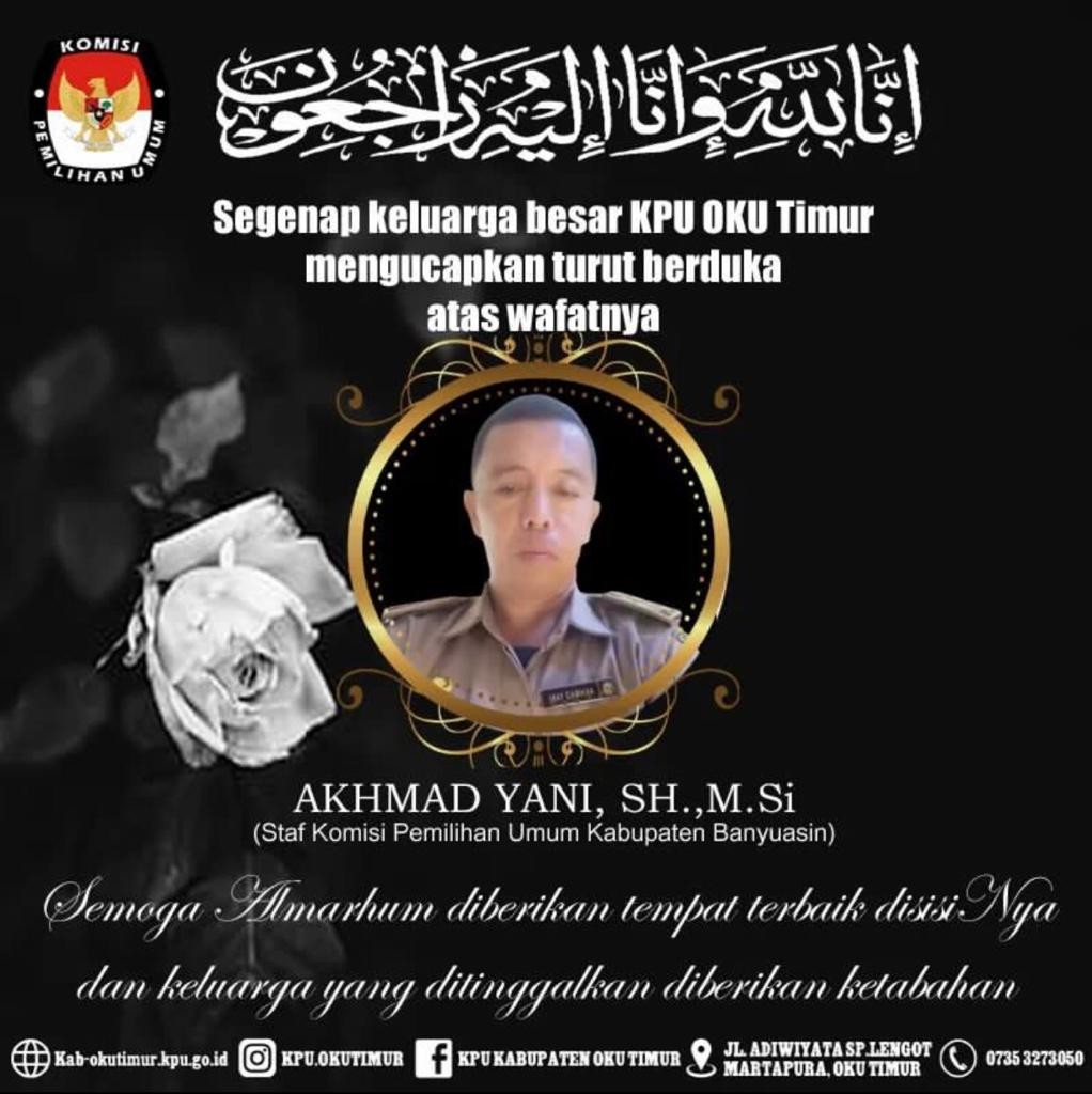 Segenap Keluarga Besar KPU Kabupaten OKU Timur mengucapkan Turut Berduka Cita atas wafatnya Akhmad Yani, SH, M.Si (Staf Sekretariat KPU Kabupaten Banyuasin).