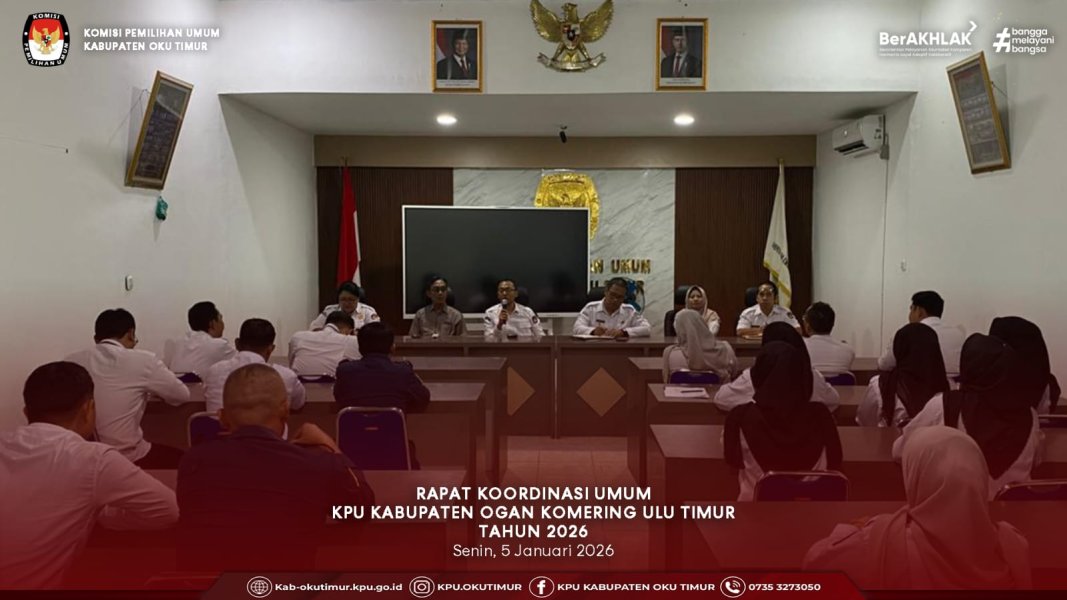 #TemanPemilih KPU Kabupaten OKU Timur melaksanakan Rapat Koordinasi Umum di Sekretariat KPU Kabupaten OKU Timur. Senin, (05/01/2026)